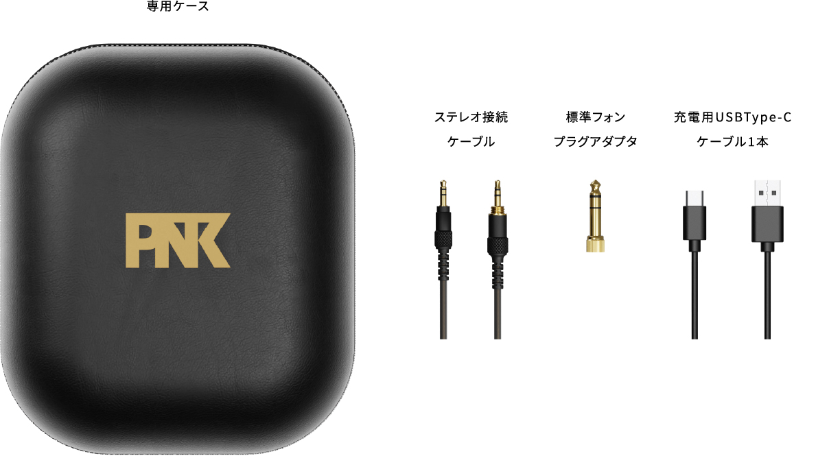 シンプルかつスリムな形状のハウジングには、高剛性アルミニウム素材と半開放型スリットデザインを採用。また、肌に触れるヘッドバンドおよびイヤーパッドにはそれぞれパーツごとに異なるエコレザーを使用しています。しっとりとした質感のマットブラックにPNKモデル特有のアンティークゴールドを所々に施すことで、フラグシップモデルにふさわしいラグジュアリーで重厚感のある雰囲気に仕上げました。